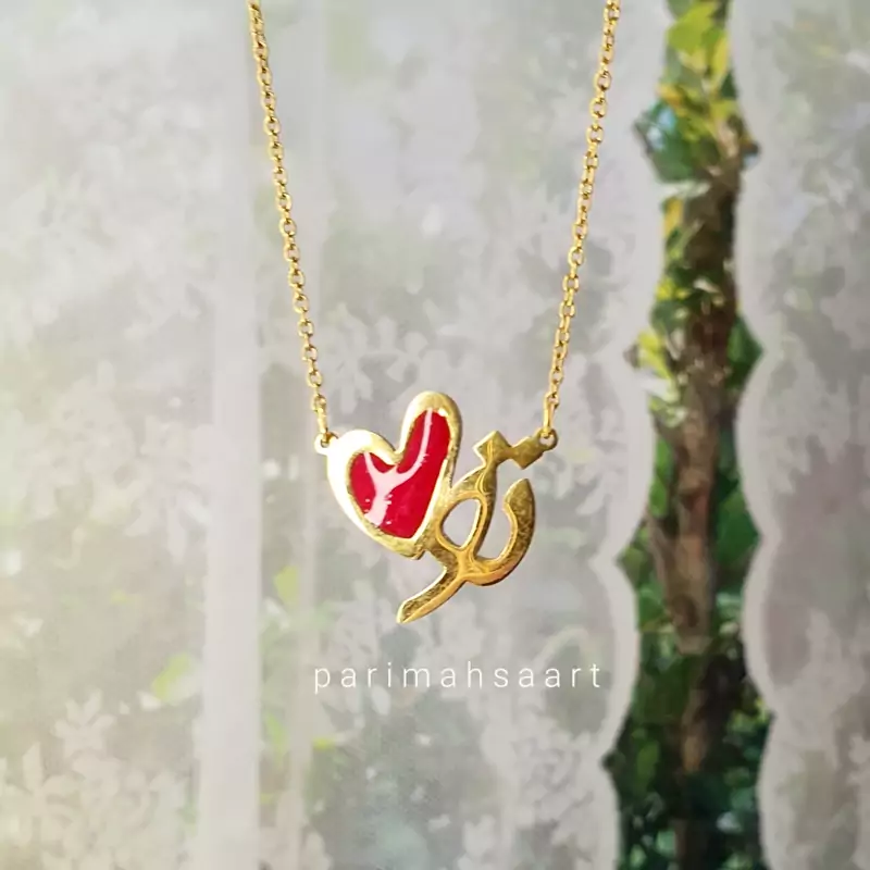 آویز گردنی تو ، فریم استیل طلایی رنگ ثابت و رزین ، زنجیر دوطرفه دیپلمات ، قد زنجیر کوتاهه