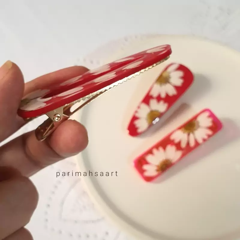 #گیره_سر بابونه 🌼😍🤩 تکی 🔸️با ضخامت کمتر از قبل بسیار محکم و بادوام مدل گیره ها انبری قابل ساخت در رنگهای مختلف بالایی قرمز مات پایینی سرخابی شفاف