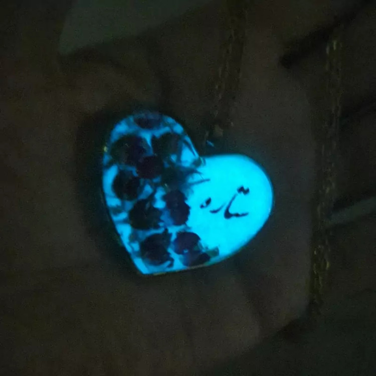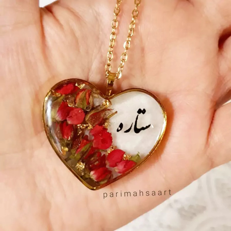 گردنبند رزینی عکس دوطرفه قلبی شبتاب با گل رزمینیاتوری