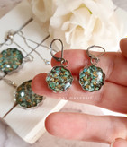 ست کامل فیروزه از فیروزه اصل نیشابور ساخته شده و شامل گردنبند با زنجیر ۴۵ سانت و دستبند آسانسوری و گوشواره با فریم خورشیدی میباشد